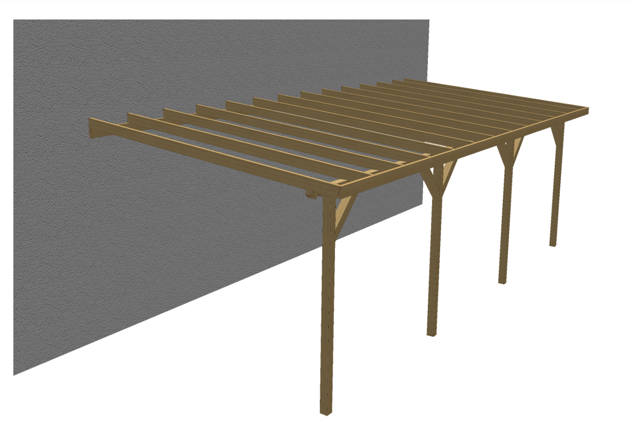 Nowoczesna, minimalistyczna wiata przyścienna o długości prawie 8 metrów to praktyczne i estetyczne rozwiązanie dla osób, które chcą zyskać zadaszoną przestrzeń bez budowy zamkniętego garażu. Idealnie sprawdzi się jako wiata samochodowa, miejsce na sprzęt ogrodowy lub strefa rekreacyjna przy domu. Prosta, geometryczna forma świetnie komponuje się zarówno z nowoczesną, jak i klasyczną bryłą budynku. Konstrukcja oparta na solidnych przekrojach drewna zapewnia stabilność i trwałość na lata. Dach o niewielkim nachyleniu 6° gwarantuje skuteczne odprowadzanie wody, zachowując jednocześnie elegancki, lekki wygląd całej konstrukcji.To rozwiązanie dla osób, które cenią trwałość, funkcjonalność i estetykę w jednym.