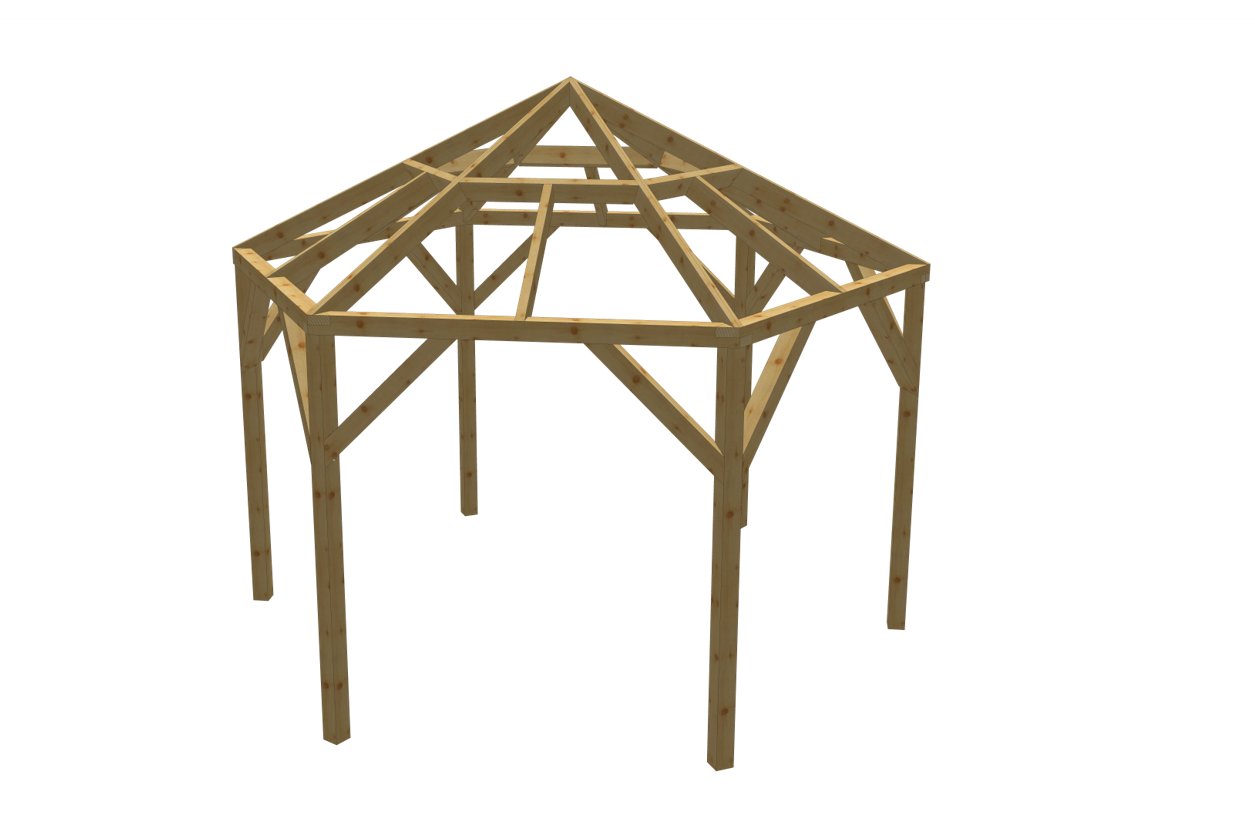 Wymiary konstrukcji dachowej: 614 × 514 cm